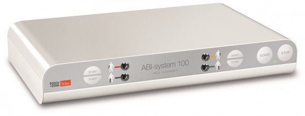 PAVK-Früherkennung mit dem boso ABI-system 100: ein Gewinn für alle. Eine präzise und schnelle, vaskulär orientierte Erstuntersuchung.Der entscheidende Wert für die Diagnose der PAVK ist der Knöchel-Arm-Index (engl.: ABI, Ankle-Brachial-Index). Das boso ABI-system 100 ermittelt diesen Wert zeitgleich und oszillometrisch an allen vier Extremitäten. Die eigentliche Messung dauert dabei nur ca. 1 Minute. Ein ABI-Wert < 0,9 weist im Vergleich mit dem Angiogramm als Goldstandard mit einer Sensitivität von bis zu 95 % auf eine PAVK hin und schließt umgekehrt die Erkrankung mit nahezu 100 % Spezifität bei gesunden Personen aus.